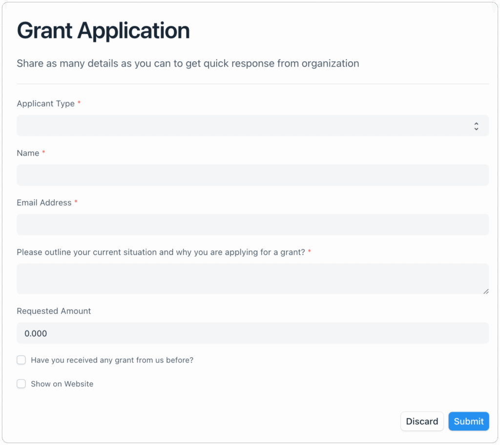 Nonprofits can also distribute funds to individuals or organizations through grants. Applicants submit a proposal containing details about themselves, the requested amount, and a description of the project for which they wish to receive funds. An Assessment Manager can then score the application out of ten and decide whether to disburse the grant to the applicant.